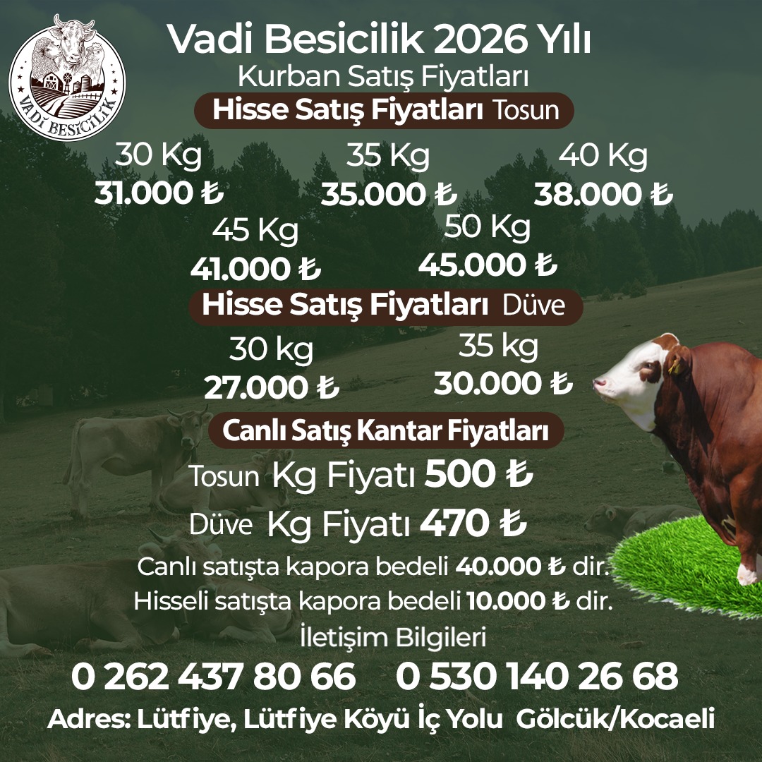Kentimizde Kurban Bayramı denildiğinde akla gelen ilk kurumlardan biri Vadi Besicilik. Kurbanlık büyükbaş hayvan konusunda tek adres olan Vadi Besicilik her yıl hayvan pazarında yap